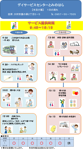 営業日: 月~土(日曜日は休館となります) 営業時間: 9:45~16:15(送迎サービスを希望される場合は、ご自宅に伺う時間は前後します。)